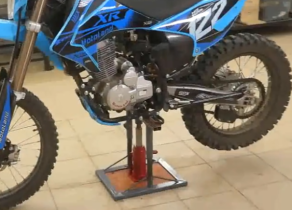 日常生活在汽车换胎、三轮修理的作业中经常会使用千斤顶将一侧支撑起来方便作业,自行车这种两轮设备因不好保持平衡而且质量较轻,所以一般都倒过来修理。但是摩托车重量比自行车要重,零件也更加精细,如果倒过来修理可能会损坏手柄上的开关零件,但是正着顶升又不容易保持平衡这该怎么办呢?