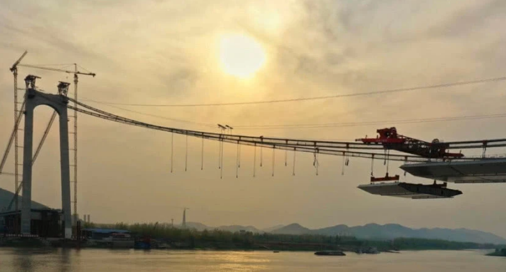 4月8日,在湖北棋盘洲长江公路大桥北岸,起吊机正有条不紊地吊起一段260吨重的钢箱梁。几分钟后,吊起的箱梁在成华千斤顶的协助下缓缓降落在指定位置。这次的箱梁吊装,是3月20日项目复工以来的首次吊装作业,标志着项目建设正式恢复到正常状态。