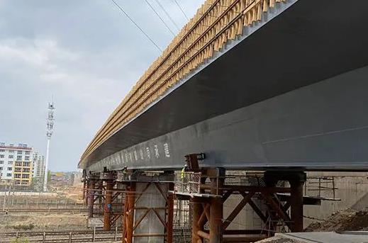 燕庄公铁立交桥位于大同市平城区,上跨燕大、古大、京包等11条铁路线,钢箱梁顶推距离158米,是我省上跨铁路线路最多的桥梁,也是全省最长的钢箱梁顶推桥。该桥全长195.6米,单箱单室钢箱梁由30个梁段焊接而成,梁体总重约为1400吨,是大同市御东片区连接南北方向的重要交通通道。