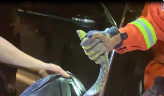 近日,遵义市某地发生了一起比较罕见的意外事件,遵义市正安县山城路消防救援站接到一起报警电话,报警人称在正安县真安酒店停车场一辆轿车车轮内有蛇,请消防员帮忙抓蛇。