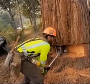 提到伐木工作大家都觉得只要有电锯就可以了,根本不需要千斤顶。其实不是的,因为伐木行业危险性极高,控制不好树木倒下的方向,就容易砸伤工作人员。为此,伐木工人依靠自己的智慧将千斤顶用在伐木工作中,既省时省力又可以保证树木不砸向自己,让我们来看看伐木工人是如何使用它的。首先伐木工人用电锯在树木一侧锯出一个方形空间,在两边的缝隙中放入三角的楔子作为支撑,然后将千斤顶放在方形空间中,调节高度使上下都接触到树木,再把另一面锯一下,接下来就可以调节手柄顶升大树。这样砍树既提高了工作效率,还非常安全,不用担心大树会砸伤自己。
