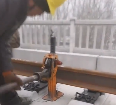 近日,为保证中秋铁路运营,轨道工人加班加点对铁路进行检修,在出站400米左右的地方发现了一节铁轨的零件出现了损坏,需要进行铁轨更换。更换铁轨难得不是拆卸铁轨,而是如何精准的将新的铁轨和就的铁轨进行对接,因为一旦对接不严密,就容易使货车发生晃动,严重的还会导致脱轨事故的发生。齿条千斤顶是日常生活中常用的起重工具,常用在轨道更换工作中,可以在下降过程中调整铁轨的位置,快速高效的完成铁轨的更换工作。更换铁轨时,将铁轨卡在千斤顶侧方,扳动手柄对准对接的位置,缓慢的使铁轨下落,完成精准的对接。过程中还可以停止下落进行位置的调整,十分方便。经过紧急施工,铁路工人快速更换好了轨道保证了列车的安全运行。