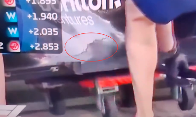 因为赛车过程中轮胎的工作温度很高,而且因为速度很快车胎的抓地力大,行驶一段时间后就会磨损的非常严重,所以一般都会在中途进入维修车道进行换胎,换胎时需要使用千斤顶将车辆抬起,以达到快速换胎的目的。近日一位选手的赛车在进入维修通道换胎时,因为千斤顶顶升位置错误导致车身出现明显的开裂,虽然只是开裂,但这对正在进行比赛的车辆无疑是巨大的损伤,索性并未出现事故。