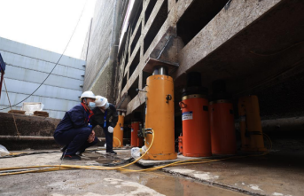 三峡南线船闸、葛洲坝三号船闸同步停航检修,工期30天,这是两处船闸4年来的新一轮大修。船闸是保证通航正常的一个建筑物,利用它来调整两处的水位差,从而使船正常经过,它体积大、重量重,这些特点都给检修增加了困难。为了技术部门历经多年研发出了人字门同步顶升和机械保顶系统,利用多个液压千斤顶,同一控制来对其进行顶升。