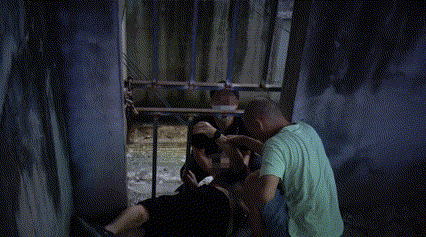 了解情况后救援人员决定对铁门进行破拆,扩大风险使老人脱困。救援时为防止老人在救援过程中发生二次伤害,首先通知其家属用毛巾遮挡住老人头部,随后使用液压破拆工具将其中一根铁门栏杆剪断,再使用液压千斤顶将切口处扩张,为被困老人留出了足够的救援空间。2分钟后顺利地将老人救出送至医院。